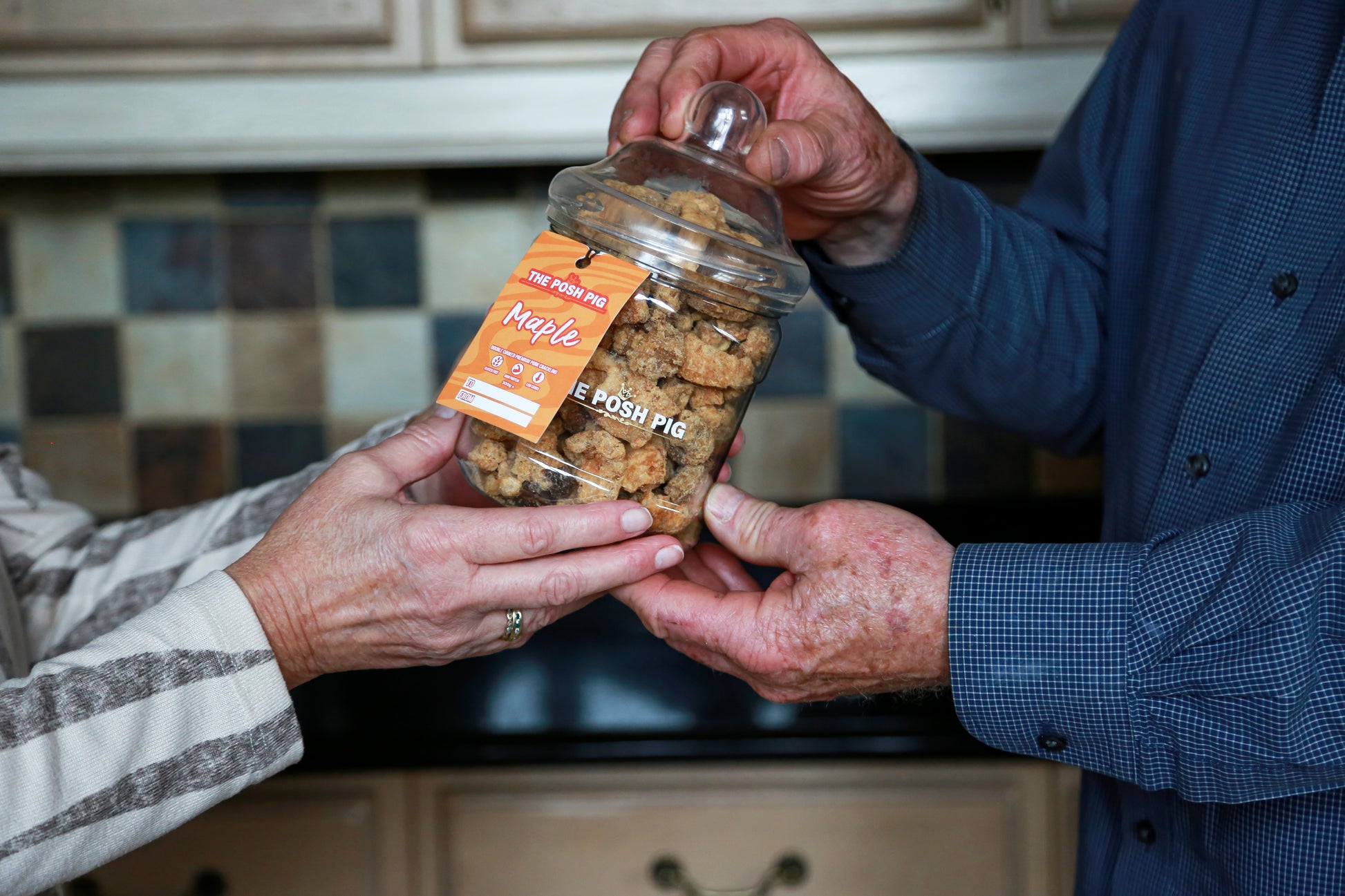 Our gifting jars are high-quality plastic, filled to the brim with the best quality Pork Crackling.