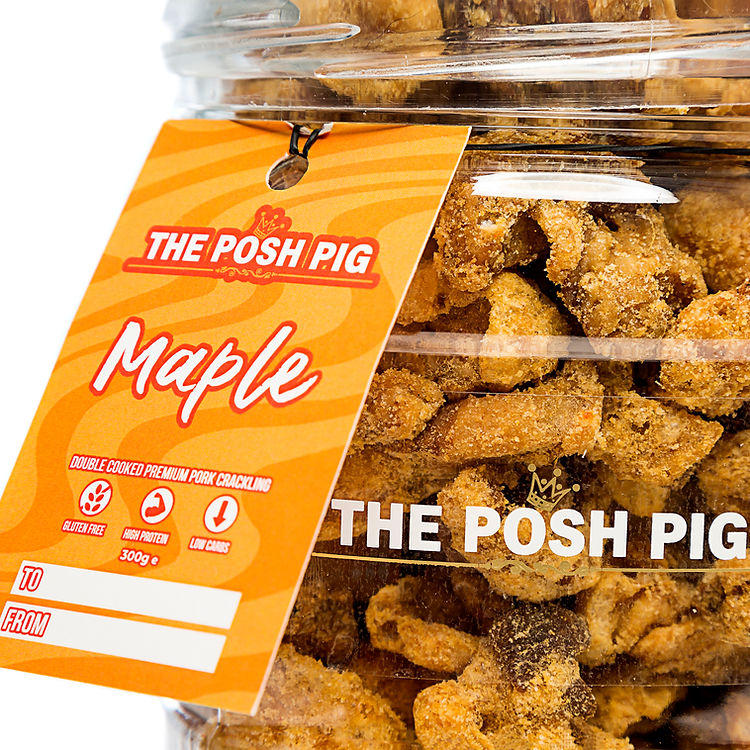 This beauty contains 300g Maple flavoured Pork Crackling. For those who like something a little different, this flavour has the perfect Sweet & Salt balance & is a real winner at The Posh Pig!